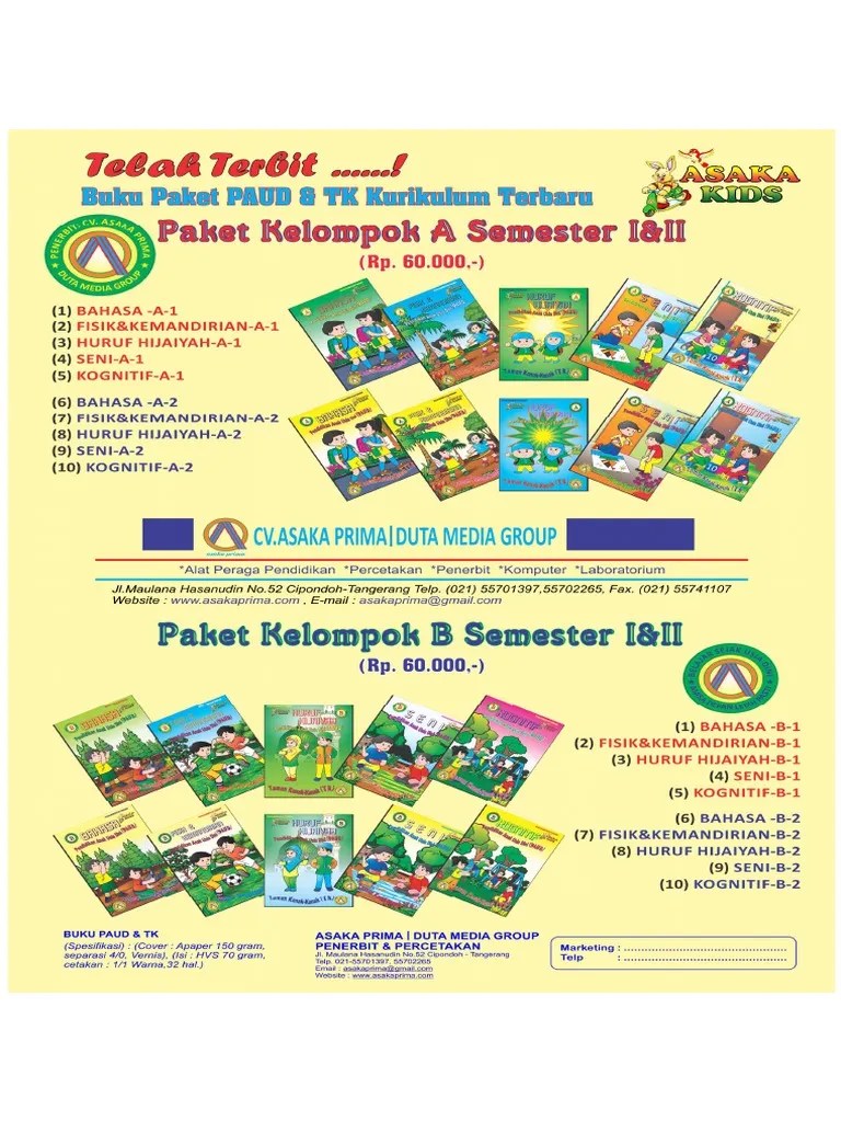 Buku paket tematik tk a dan b buku paud buku paket belajar untuk tk dan paud.